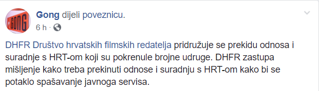 Prekidu odnosa i suradnje s HRT-om pridružilo se i DHFR (Društvo hrvatskih filmskih redatelja). DHFR zastupa mišljenje kako treba prekinuti odnose i suradnju s HRT-om kako bi se potaklo spašavanje javnoga servisa.