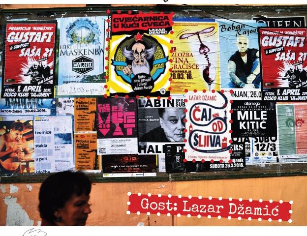 Lazar Džamić živi i radi u London, bavi se strateškim planiranjem u oglašavanju, stručnjak je za digitalni marketing, radio je kao novinar, a piše i beletristiku. Bojan je kao moderator razgovor počeo o životu u Londonu, o Englezima i razlikama kako ih je Lazar opisao u zbirci priča Čaj od šljiva, nastavljeno je o svojevrsnoj studiji posvećenoj stripu Alan Ford – Cvjećarnica u kući cvijeća, a završava o novinarstvu.