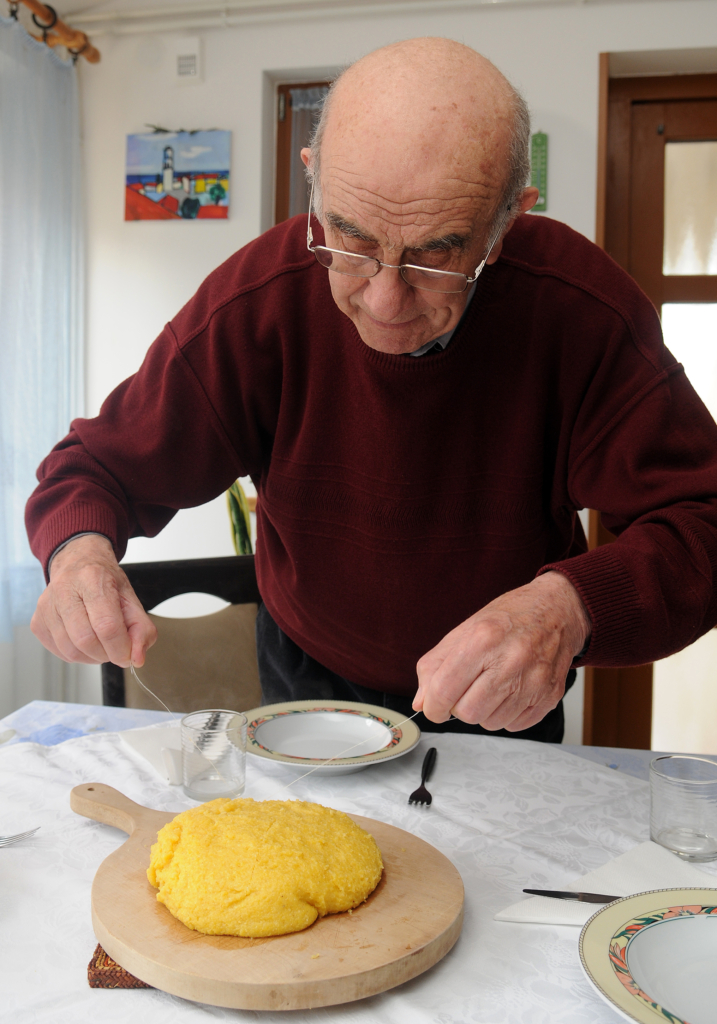 PREMANTURA 13.04.2012. IVAN PAULETTA rakovi palenta rezanje palente biljnim koncem Snimio Manuel ANGELINI